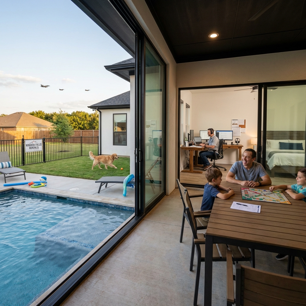 When you’re traveling to Wichita Falls for a military assignment, medical rotation, or family event, you need more than just a place to sleep. You need a space where your kids feel at home, your work doesn’t suffer, and everyone stays sane. We built our three-bedroom vacation rental specifically for families and professionals who refuse to compromise on either front. Here’s how we’ve solved the biggest challenge of blending work and family life while traveling: a dedicated home office with reliable connectivity, sleeping spaces for everyone, stress-relief amenities, and a location that puts you close to Sheppard Air Force Base and major medical centers. Our home doesn’t make you choose between productivity and family time. Instead, we’ve designed every corner to support both.